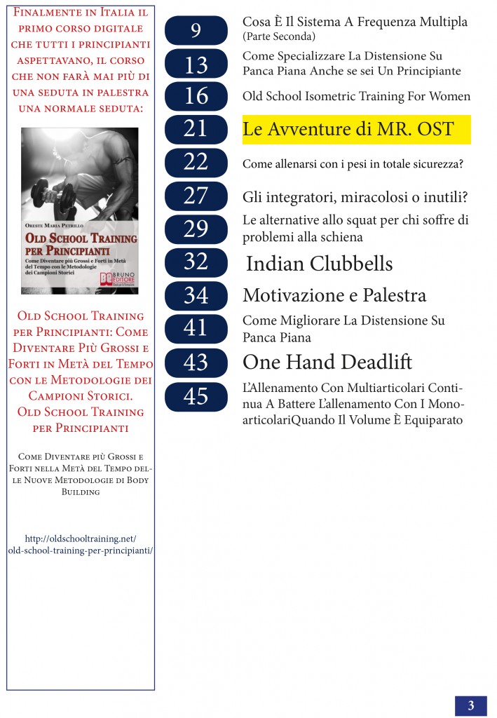 La prima rivista OST: Old School Training per chi non vuole essere più schiavo dei mercanti del fitness e vuole solo la verità nuda e cruda.