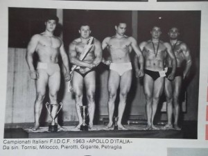 L’evento che mi laureò con il titolo di Mister Puglia 1960 su un nutrito lotto di concorrenti fu la svolta decisiva per la mia carriera sportiva. Ero diventato un Culturista vincente, cinque anni dopo aver iniziato ad allenarmi con una vecchia saracineca e pesi di pietra!