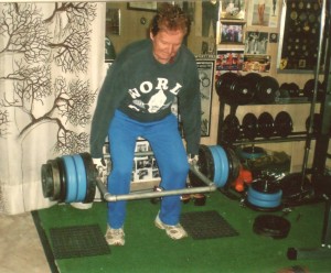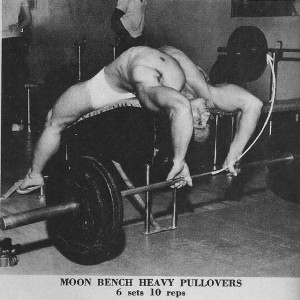 Riguardo agli esercizi base che eseguivo in Palestra a Milano, c’erano naturalmente la distensione in piedi con bilanciere, la distensione su panca con bilanciere,il rematore (rowing) con bilanciere, le trazioni alla sbarra che ormai eseguivo con aggiunta di peso allacciato con una catena alla vita e peso tra le gambe(20kg..)per sei-otto ripetizioni.Lo stacco da terra non mi ispirava molto, ma comunque lo facevo , anche se controvoglia. Ci sono esercizi che “senti” ed altri che non ti piacciono. Il sistema,come ho avuto occasione di dire in precedenza era di sei serie per tutti gli esercizi, riposo tra leserie di circa uno-due minuti caricando pesi e diminuendo le ripetizioni. A volte provavo anche i massimali per stabilire nuovi primati sulla tabella della FIdCF della rivista CULTURA FISICA di Firenze,organo federale. Un esercizio che mi “prese” e che ho poi sempre eseguito era il pull-over con bilanciere olimpionico (pesante) Sdraiato su panca, con la testa fuori dall’appoggio, quasi a guardare dietro. Tiravo il bilanciere da terra al petto, ripetendo il movimento.Avevo bisogno di un peso (un partner) seduto sulle gambe che mi teneva fermo sulla panca,poiché mi allenavo con 100 e passa kili e tendevo ad arcuarmi ed a ribaltare la panca (vedere foto)Mi allenavo sempre con un compagno e ci impegnavama sempre al massimo. Ricordo i nomi di due ottimi culturisti che si allenavano con me: Il compianto Gianni Massara,un calabrese milanese di adozione ed un romano Giorgio Castiglioni,che era anche giocatore di Hockey sul ghiaccio al Palasport milanese.