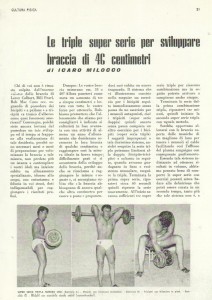 Poiché “ non c’è mai niente d nuovo sotto il sole” (perdonatemi la frase) riproporrò qualche articolo di allora,sempre valido anche oggi,comunque “rivisitato e corretto”che in fondo fa parte dell’enciclopedia culturistica di tutti i tempi!