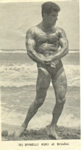 Così ebbe inizio la mia avventura . Inizialmente mi iscrissi nell’unica palestra di Brindisi, ove risiedevo, e che poi era la stessa dove facevamo lezione di ginnastica all’istituto geometri. C’erano parallele, anelli, spalliere svedesi, cavalli con maniglie, assi di equilibrio, clavette, pertiche e funi. Niente pesi. Nel periodo invernale mi impegnai negli allenamenti e debbo dire che in un paio di mesi di pratica migliorai in tonicità muscolare, elasticità ed anche forza. Ma non ero molto soddisfatto. Finchè un giorno, passando davanti alla vetrina di una libreria in centro, non vidi un libro (Muscoli e bellezza, autore John Vigna). La copertina raffigurava un atleta eccezionale in posa di schiena con torsione: Steve Reeves. Acquistai il libro e lo lessi immediatamente, seguendo gli esercizi “disegnati” che raffiguravano un atleta che sollevava un bilanciere e due manubri.