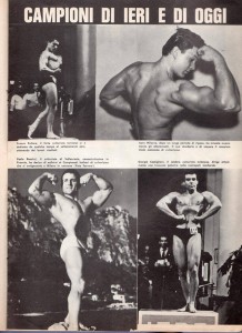 L’alimentazione era “onnivora”: Pasta, riso, minestroni e grosse bistecche di manzo. Uova e frutta. In breve mi accorsi che gli allenamenti funzionavano e la nutrizione ed il riposo facevano il resto. Stavo migliorando a vista d’occhio e, guardandomi allo specchio iniziavo a copiare le pose degli atleti raffigurati in alcune foto del libro. L’avventura era iniziata.